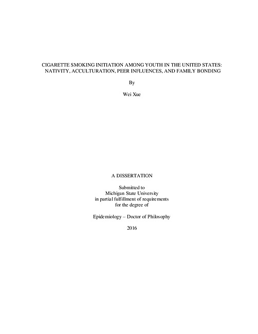 Cigarette smoking initiation among youth in the United States : nativity, acculturation, peer influences, and family bonding