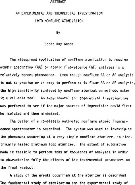 An experimental and theoretical investigation into nonflame atomization
