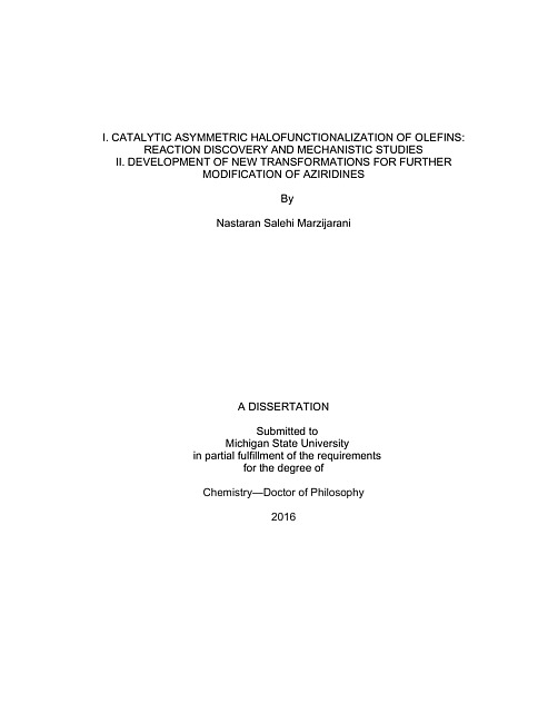 I. Catalytic asymmetric halofunctionalization of olefins : reaction discovery and mechanistic studies ; II. Development of new transformations for further modification of aziridines