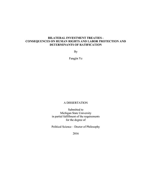 This dissertation explores the domestic ratification process of bilateral investment treaties (BITs), and how these treaties and the asymmetric rights afforded by these treaties to investors impact human rights conditions and labor practices in developing countries. Chapter 2 investigates the domestic ratification process of BITs. It is puzzling that signed BITs take a long time to get ratified in some countries while they are ratified promptly in others. I model domestic ratification as a dynamic process of updating the costs and benefits of BITs after the signature. I argue that states update their assessment of the costs of BITs after signing by observing BIT claims against themselves as well as peer countries. Those claims delay ratification of BITs. In addition, host states are more likely to ratify BITs if ratification activity among their economic competitors is intense. Rapid ratification rates in countries that are economic competitors has the potential to increase fears of missed investment opportunities due to investment diversion, make domestic groups lean more favorably towards ratification and thus shorten the time between signing and ratifying BITs. Using all signed BITs as of 2007 and a BIT-year framework that allows to capture changing conditions after the signing stage, I find strong evidence for the arguments though the impact of BIT claims against states themselves is relatively weak, among others.Chapter 3 systematically theorizes and rigorously tests the effect of BITs on human rights practices of signatory countries. I argue that BITs have the potential to worsen human rights practices because they lock in initial conditions attractive to investors, both retrospectively and into the future. These conditions may include low standards for environmental protection or labor rights and tied hands with respect to provision of welfare benefits, basic infrastructure, investment in environmentally friendly technologies or land reform. The combined lock-in and constraining effects of BITs are sources of popular grievance and dissent in states that host foreign investment. Repression and human rights violations are key responses of states to the manifested or just anticipated protest and dissent that can result from such grievances. Furthermore, I argue that democracies have higher accountability and a lower threat perception for dissent, mitigating the negative effect of BITs. Using data on 113 developing countries between 1981 to 2009, I find support for my hypotheses.The last chapter examines the impact of BITs on collective labor rights that captures the freedom of association and collective bargaining rights and differentiates labor laws from the labor practices on the ground. I argue that BITs have little impact on collective labor laws while they worsen labor practices and widen the gap between labor laws and practices. Since foreign investors prefer to maintain the status quo level of regulations in capital-hosting states, BITs tend to stabilize labor laws. However, BITs are able to lock in initial low labor standards that are attractive to foreign investors, which may be a potential source of labor grievance and labor unrest. Also multinational corporations are found to be inviting targets for labor unrest. Given that all this anticipated or manifested labor unrest is likely to be challenged by foreign investors under stringent investment protective treaty clauses, host governments are forced to take measures to undermine the collective action capability of domestic labor groups, and reduce the risk of labor unrest. I argue that host governments may choose to undercut collective labor practices, resulting in a worsening of labor practices and a larger gap between labor laws and practices. Evidence from 120 developing countries from 1985 to 2002 supports my hypotheses.