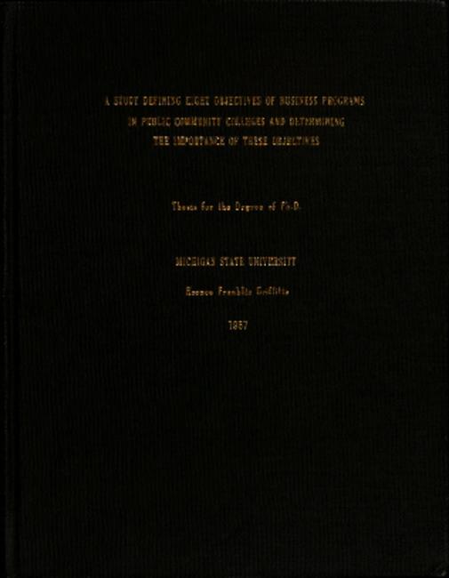 A study defining eight objectives of business programs in public community colleges and determining the importance of these objectives