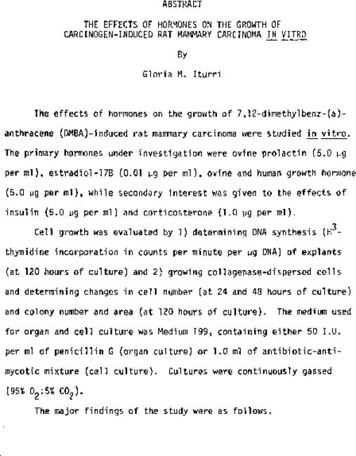 The effects of hormones on the growth of carcinogen-induced rat mammary carcinoma in vitro