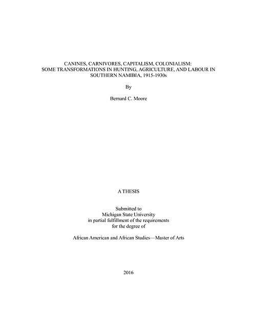 Canines, carnivores, capitalism, colonialism : some transformations in hunting, agriculture, and labour in southern Namibia, 1915-1930s