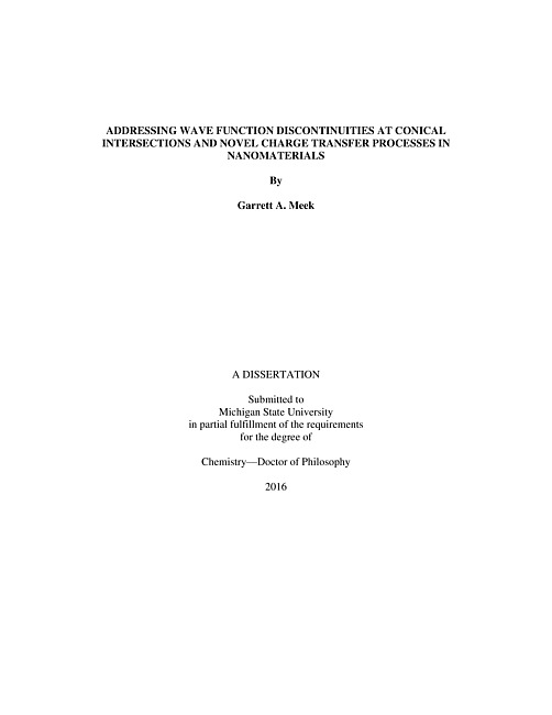 "The following dissertation describes work completed in fulfillment of the requirements for the degree, doctor of philosophy, in Chemistry from Michigan State University. This work addresses complications that arise when the adiabatic representation of electronic states is used during nonadiabatic molecular dynamics. Specifically, this work provides dynamical solutions for discontinuities in the electronic wave functions at conical intersections. Additionally, static quantum chemical approaches are used to investigate a novel charge transport mechanism in graphitic carbon nitrides, a class of metal-free materials capable of photocatalytic water splitting."--Page ii.