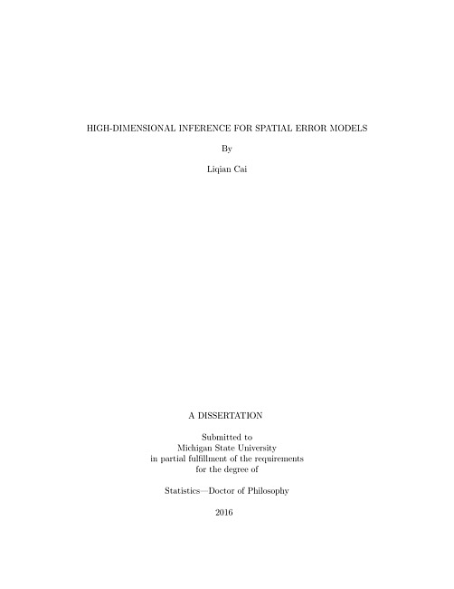In the literature of econometric theory and application, issues relating to urban, real estate, agricultural, and environmental economics, etc., where the data are collected spatially from cross-sectional units, are common and in these circumstances, the spatial relation among the sampling sites can not be ignored. Spatial autocorrelation is thus introduced to model the correlation among values of a single variable strictly attributable to their relatively close locational positions on a two-dimensional surface, which extends autocorrelation in time series to spatial dimensions.With the growth of computer capabilities, databases are becoming progressively larger and more complex, making traditional statistical methods less effective or sometimes even unsuitable. Data from high-frequency economic transactions, detailed macroeconomic data collected by a multitude of sources with varying data quality and varying sampling frequencies, and data on large economic and social networks are just a few examples of the content of enormous databases that are now subject to thorough examination.This dissertation discusses applicable (high-dimensional) variable selection and estimation methods and corresponding theories focusing on a spatial error model where the spatial autocorrelation comes from the disturbances across cross-sectional units, in a regression context.In the first part, we propose a generalized Lasso-type of estimator for the spatial error model, where the disturbance terms are autocorrelated across cross-sectional units. We further prove the estimation consistency and selection sign consistency of the parameter estimator under both the low dimensional setting when the dimension of the parameter p is fixed and smaller than the sample size n, as well as the high dimensional setting when p is greater than and can be growing with n. The number of non-zero components of the parameter in both settings are considered relatively smaller than the number of observations (sparsity).In the second part, we continue to investigate post-model selection estimators that apply estimation to the model selected by first-step variable selection. We show that by separating the model selection and estimation process, the post-model selection estimator can perform at least as well as the simultaneous variable selection and estimation method in terms of the rate of convergence. The convergence rate of the estimation error in both the l2 and sup norms are studied. Moreover, under perfect model selection, that is, when the selection process is able to correctly identify the significant covariates of the true model with probability goes to 1, the oracle convergence rate can be reached.In the last part, a sketch of the future work on high-dimensional analysis on mixed regressive, spatial autoregressive model, where the response unit depends not only on the explanatory variables but also on the response from its neighboring units, is described.