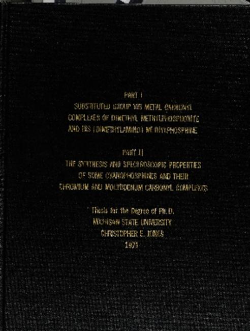Part I. Substituted group VIB metal carbonyl complexes of dimethyl methylphosphonite and bis (dimethylamino) methylphosphine. Part II. The synthesis and spectroscopic properties of some cyanophosphines and their chromium and molybdenum carbonyl complexes