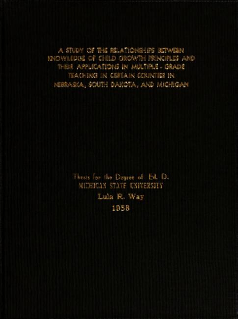 A study of the relationships between knowledge of child growth principles and their applications in multiple-grade teaching in certain counties in Nebraska, South Dakota, and Michigan