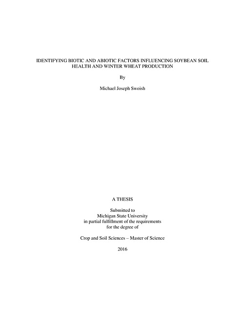 Identifying biotic and abiotic factors influencing soybean soil health and winter wheat production