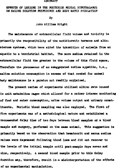 Effects of lesions in the posterior medical hypothalamus on saline solution preference and body water regulation