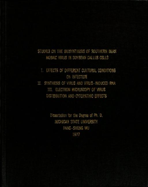 Studies on the biosynthesis of southern bean mosaic virus in soybean callus cells : I. Effects of different cultural conditions on infection. II. Synthesis of virus and virus-induced RNA. III. Electron microscopy of virus distribution and cytopathic ef...