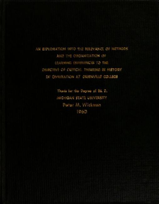 An exploration into the relevance of methods and the organization of learning experiences to the objective of critical thinking in history of civilization at Greenville college