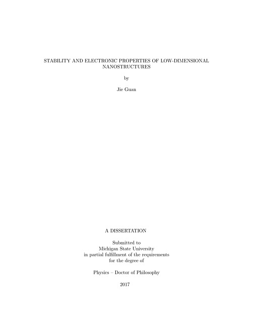 As the devices used in daily life become smaller and more concentrated,traditional three-dimensional (3D) bulk materials have reached theirlimit in size. Low-dimensional nanomaterials have been attracting moreattention in research and getting widely applied in many industrialfields because of their atomic-level size, unique advanced properties,and varied nanostructures. In this thesis, I have studied the stability andmechanical and electronic properties of zero-dimensional (0D)structures including carbon fullerenes, nanotori, metallofullerenes andphosphorus fullerenes, one-dimensional (1D) structures including carbonnanotubes and phosphorus nanotubes, as well as two-dimensional (2D)structures including layered transition metal dichalcogenides (TMDs),phosphorene and phosphorus carbide (PC).I first briefly introduce the scientific background and the motivationof all the work in this thesis. Then the computationaltechniques, mainly density functional theory (DFT), are reviewed inChapter 2.In Chapter 3, I investigate the stability and electronic structure ofendohedral rare-earth metallofullerene La@C$_{60}$ and thetrifluoromethylized La@C$_{60}$(CF$_3$)$_n$ with $n{\leq}5$. Odd $n$ ispreferred due to the closed-shell electronicconfiguration or large HOMO-LUMO gap, which is also meaningful for theseparation of C$_{60}$-based metallofullerenes.Mechanical and electronic properties of layered materials includingTMDs and black phosphorus are studied in Chapter 4 and 5. In Chapter 4,a metallic NbSe$_2$/semiconducting WSe$_2$ bilayer is investigated andbesides a rigid band shift associated with charge transfer, thepresence of NbSe$_2$ does not modify the electronic structure ofWSe$_2$. Structural similarity and small lattice mismatch results in theheterojunction being capable of efficiently transferring charge across theinterface. In Chapter 5, I investigate the dependence of stability andelectronic band structure on the in-layer strain in bulk blackphosphorus.In Chapters 6, 7 and 8, novel 2D structures are predictedtheoretically. In Chaper 6, I propose two new stable structural phasesof layered phosphorus besides the layered $\alpha$-P (black) and$\beta$-P (blue) phosphorus allotropes. A metal-insulator transitioncaused by in-layer strain or changing the number of layers is foundin the new $\gamma$-P phase. An unforeseen benefit is the possibilityto connect different structural phases at no energy cost, which furtherleads to a paradigm of constructing very stable, faceted phosphorusnanotube and fullerene structures by laterally joining nanoribbons orpatches of different planar phosphorene phases, which is discussed in Chapter 7.In Chapter 8, I propose previously unknown allotropes of PC in thestable shape of an atomically thin layer. Different stable geometries,which result from the competition between $sp^2$ bonding found ingraphitic C and $sp^3$ bonding found in black P, display differentelectronic properties including metallic, semi-metallic with ananisotropic Dirac cone, and direct-gap semiconductors with their gaptunable by in-layer strain.In Chapter 9, I propose a fast method to determine the localcurvature in 2D systems with arbitrary shape. The curvatureinformation, combined with elastic constants obtained for a planarsystem, provides an accurate estimate of the local stability inthe framework of continuum elasticity theory. This approach can beapplied to all 2D structures.Finally, I present general Conclusions from the PhD Thesis work inChapter 10.