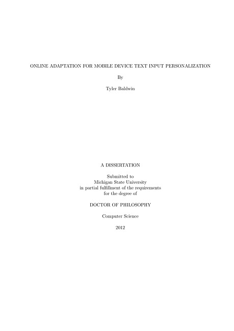 As mobile devices have become more common, the need for efficient methods of mobile device text entry has grown. With this growth comes new challenges, as the constraints imposed by the size, processing power, and design of mobile devices impairs traditional text entry mechanisms in ways not seen in previous text entry tasks. To combat this, researchers have developed a variety of text entry aids, such as automatic word completion and correction, that help the user input the desired text more quickly and accurately than unaided input. Text entry aids are able to produce meaningful gains by attempting to model user behavior. These aids rely on models of the language the user speaks and types in and of user typing behavior to understand the intent of a user's input. Because these models require a large body of supervised training data to build, they are often built offline using aggregate data from many users. When they wish to predict the behavior of a new user, they do so by comparing their input to the behavior of the ``average'' user used to build the models.Alternatively, a model that is built on the current user's data rather than that of an average user may be better able to adapt to their individual quirks and provide better overall performance. However, to enable this personalized experience for a previously unseen user the system must be able to collect the data to build the models online, from the natural input provided by the user. This not only allows the system to better model the user's behavior, but it also allows it to continuously adapt to behavioral changes. This work examines this personalization and adaptation problem, with a particular focus on solving the online data collection problem.This work looks at the online data collection, personalization, and adaptation problems at two levels. In the first, it examines lower level text entry aids that attempt to help users input each individual character. Online data collection and personalization are examined in the context of one commonly deployed character-level text entry aid, key-target resizing. Several simple and computationally inexpensive data collection and assessment methods are proposed and evaluated. The results of these experiments suggest that by using these data assessment techniques we are able to dynamically build personalized models that outperform general models by observing less than one week's worth of text input from the average user. Additional analyses suggest that further improvements can be obtained by hybrid approaches that consider both aggregate and personalized data.We then step back and examine the data assessment and collection process for higher-level text entry aids. To do so we examine two text entry aids that work at the word level, automatic word correction and automatic word completion. Although their stated goal differs, these aids work similarly and, critically, fail similarly. To improve performance, data assessment methods that can detect cases of system failure are proposed. By automatically and dynamically detecting when a system fails for a given user, we are better able to understand user behavior and help the system overcome its shortfalls. The results of these experiments suggest that a careful examination of user dialogue behavior will allow the system to assess its own performance. Several methods for utilizing the self-assessment data for personalization are proposed and are shown to be plausibly able to improve performance.