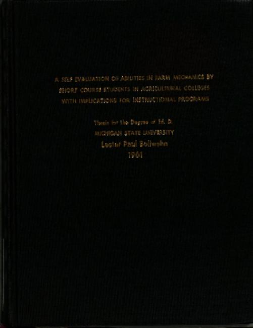 A self evaluation of abilities in farm mechanics by short course students in agricultural colleges with implications for instructional programs