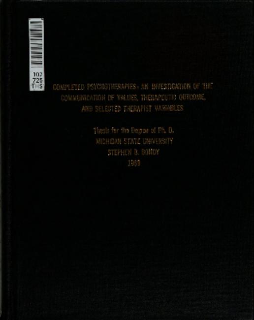 Completed psychotherapies : an investigation of the communication of values, therapeutic outcome, and selected therapist variables