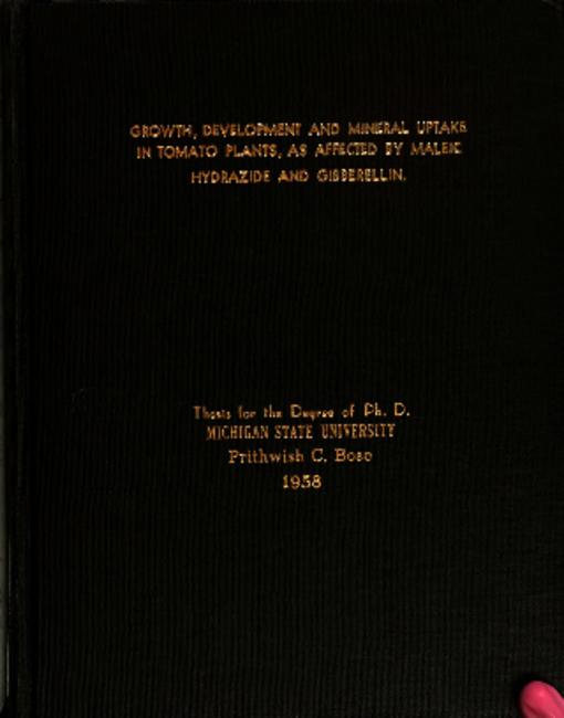 Growth, development and mineral uptake in tomato plants, as affected by maleic hydrazide and gibberellin