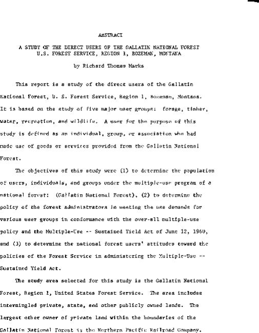 A study of the direct users of the Gallatin National Forest, U.S. Forest Service, region 1, Bozeman, Montana