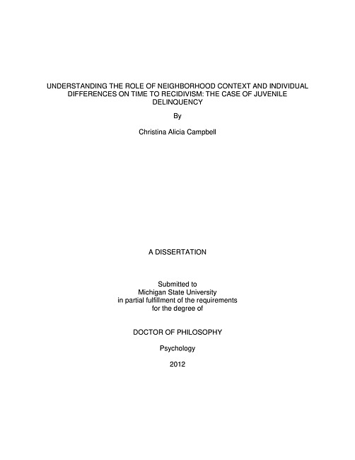Understanding the role of neighborhood context and individual differences on time to recidivism : the case of juvenile delinquency