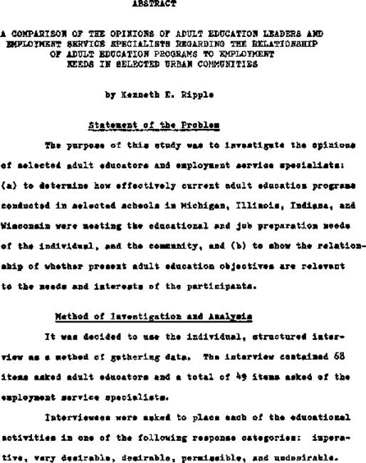 A comparison of the opinions of adult education leaders and employment service specialists regarding the relationship of adult education programs to employment needs in selected urban communities