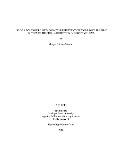 Use of a scaffolded metacognitive intervention to improve training outcomes through a reduction in cognitive load