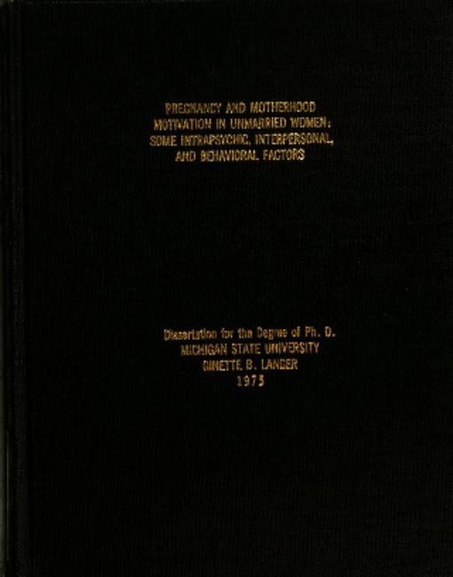 Pregnancy and motherhood motivation in unmarried women : some intrapsychic, interpersonal, and behavioral factors
