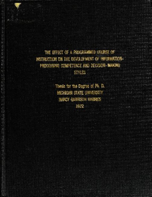 The effect of a programmed course of instruction on the development of information-processing competence and decision-making styles