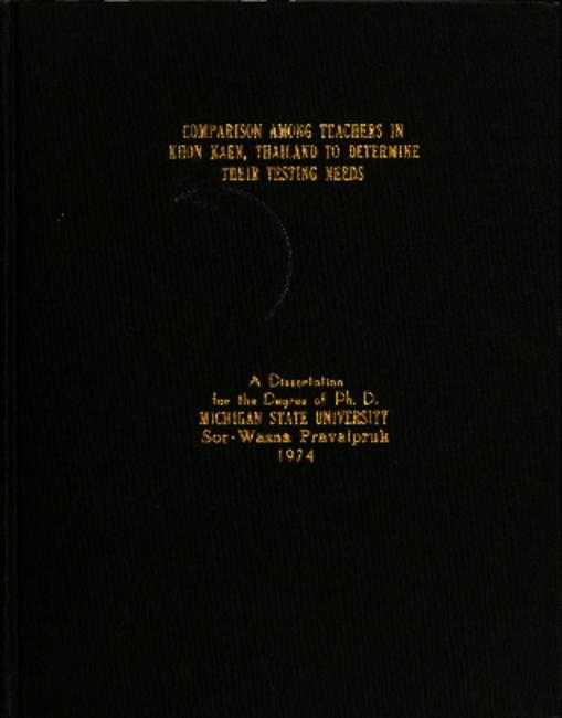 Comparison among teachers in Khon Kaen, Thailand to determine their testing needs