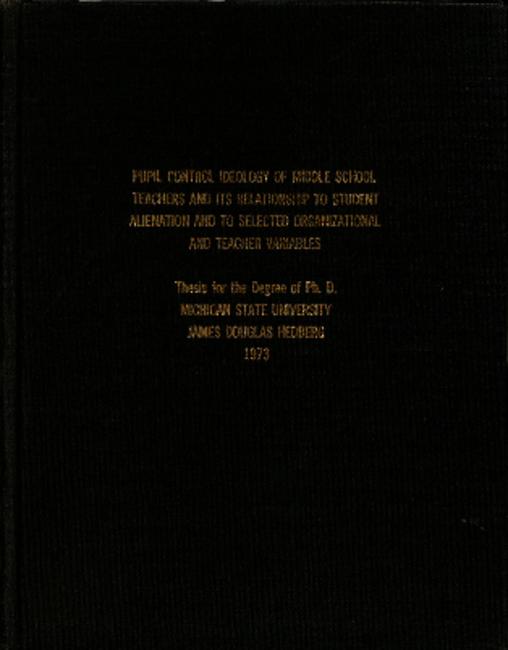 Pupil control ideology of middle school teachers and its relationship to student alienation and to selected organizational and teacher variables