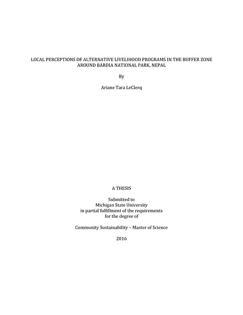 Local perceptions of alternative livelihood programs in the buffer zone around Bardia National Park, Nepal