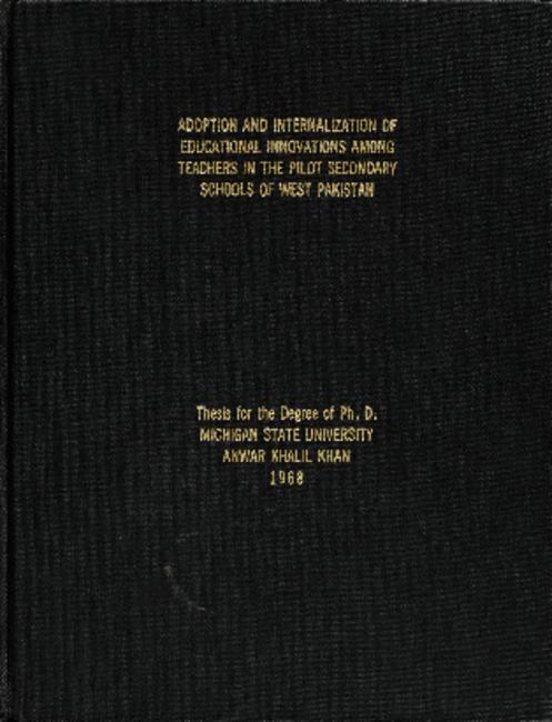 Adoption and internalization of educational innovations among teachers in the pilot secondary schools of West Pakistan