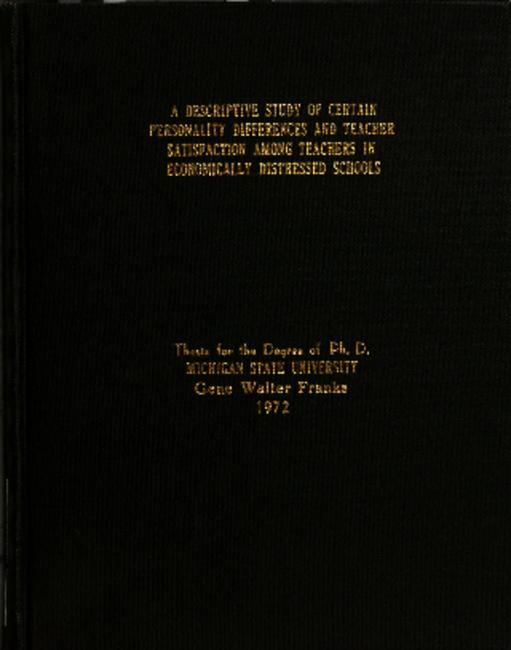 A descriptive study of certain personality differences and teacher satisfaction among teachers in economically distressed schools