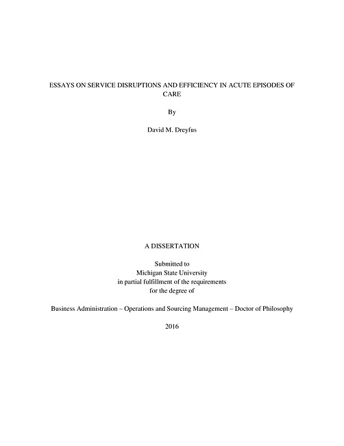 Waste in healthcare, specifically in acute episodes of care is an important concern in the healthcare industry. It has been estimated that 30% of the $2.6 trillion annual total of all health spending in the U.S. is wasted. This waste epitomizes the level of inefficiencies that are evident within various service encounters in the healthcare sector. Wastes can manifest in the forms of supplies, instruments, and time, yet there is a lack of clarity about the nature of waste, its causes, and ways to manage these inefficiencies within the literature. This dissertation intends to undertake a systematic and in-depth investigation of these issues by means of four essays. The first essay is a quantitative ethnographic study which analyzes participant observer data collected from over one-hundred surgeries which were performed in the operating theaters of a major teaching hospital. Observational, secondary, and survey data collected as a part of this ethnographic research will be analyzed to understand the nature of waste in the operating theater and the causes for these inefficiencies. The study specifically focuses on the role played by physician preference cards that are widely considered to be foundational for the efficiency of perioperative suites. It also examines the factors that help in keeping these physician preference cards updated. Building on the first essay and in concert with the observations in the operating theater, the second essay focuses on the issue of service disruptions. A systematic literature review of over 1,300 relevant articles identified in the literature will be undertaken to understand and synthesize the nature of these disruptions in hospitals. This synthesis provides the basis for essay three in which a more generalizable understanding of service disruptions and operational efficiencies in acute episodes of care will be examined. In particular, the third essay aims at examining the antecedents and consequences of service disruption risk in the context of acute episodes of care by means of primary survey data. Specifically drawing on the current theoretical work of supply chain disruptions, this study examines the antecedent role of system task and operational complexity. The study will further investigate the moderating roles of information exchange among acute care providers and the level of risk management infrastructure within the hospital.