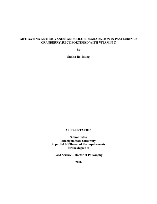 Mitigating anthocyanins and color degradation in pasteurized cranberry juice fortified with vitamin C
