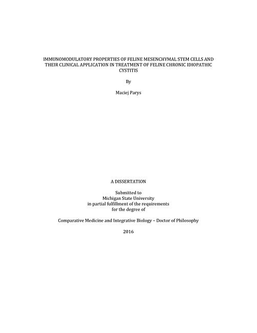 Immunomodulatory properties of feline mesenchymal stem cells and their clinical application in treatment of feline chronic idiopathic cystitis