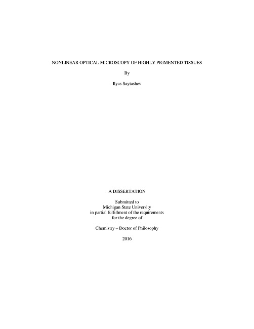 The focus of this dissertation research project was to study the effect of near-IR and IR femtosecond pulses on a living organism via nonlinear optical microscopy (NLOM) of biological specimens. Laser parameters — wavelength, pulse duration, pulse energy and the spatial quality of the beam — were optimized to maximize nonlinear optical signals with minimal photodamage during deep (down to 0.3 mm) tissue microscopy imaging of non-transparent biological specimens. The photodamage in living tissues was assessed. Experimental techniques performed include the following: femtosecond pulse characterization; adaptive spatial and temporal pulse shaping; in vivo and in vitro depth-resolved multimodal nonlinear optical microscopy imaging; spectrally resolved one- and two-photon excitation fluorescence lifetime measurements; and the scoring of a photodamage on living D. melanogaster. The experimental results are presented in four chapters. Chapter 2 describes three major topics: (1) the technical aspects of delivering compressed femtosecond laser pulses with optimal spatial properties into deep portions of a biological specimen; (2) pulse shaping for selective excitation; and (3) the simultaneous detection of different color two-photon excitation fluorescence (TPEF) optical signals using a single PMT detector. Chapter 3 describes the use of advanced laser sources, such as ultrabroadband Ti:Sapphire and Yb-fiber femtosecond lasers, in depth-resolved multimodal NLOM of biological specimens. A second-harmonic generation (SHG) microscopy of a fixed human skin demonstrated an 80% increase in attenuation length for a sub-40 fs, 1060 nm Yb-fiber oscillator in comparison to a >100 fs, 800 nm Ti:Sapphire laser. Chapter 4 describes the investigation of human red blood cells (RBC) using TPEF, third harmonic generation (THG) and three-photon excitation fluorescence (3PEF) microscopy imaging. Hemoglobin was the primary source of the TPEF signal in RBCs and their membranes, as determined by a comparison of spectrally resolved fluorescence lifetime decays of reagent-grade endogenous fluorophores, as well as linear and transient absorption measurements. THG imaging was performed on RBCs through a blood storage bag to demonstrate THG’s potential application in the non-invasive assessment of stored RBCs. Chapter 5 summarizes the experimental results and in vivo assessment of laser-induced damage during NLOM imaging in living D. melanogaster. Short-term photodamage occurred via a nonlinear process and was estimated by scoring the mechanical damage and fluorescence increase. In contrast, long-term photodamage exhibited a linear relationship with laser intensity and was scored by lethality, apoptosis and necrosis in irradiated D. melanogaster population. The study reveals the benefit of utilizing shorter pulses — 37 fs and shorter — for NLOM imaging of highly pigmented tissues wherein linear (thermal) damage is the greatest contributor to the overall photodamage of the living organism.My research successfully demonstrates the potential use of femtosecond fiber-based and ultrabroadband solid state laser systems to overcome a key performance limitation of NLOM technology, while providing low barrier-to-access alternatives to current Ti:Sapphire sources. These results should accelerate the movement of noninvasive NLOM into clinical practice.