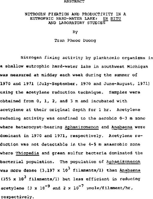 Nitrogen fixation and productivity in a eutrophic hard-water lake : in situ and laboratory studies