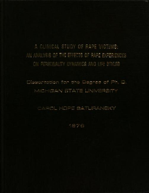 A clinical study of rape victims : an analysis of the effects of rape experiences on personality dynamics and life styles