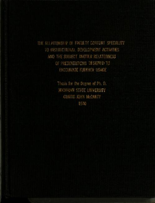 The relationship of faculty content speciality to instructional development activities and the subject matter relatedness of presentations designed to encourage further usage