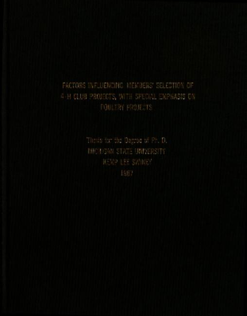 Factors influencing members' selection of 4-H projects, with special emphasis on poultry projects