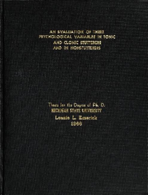 An evaluation of three psychological variables in tonic and clonic stutterers and in nonstutterers