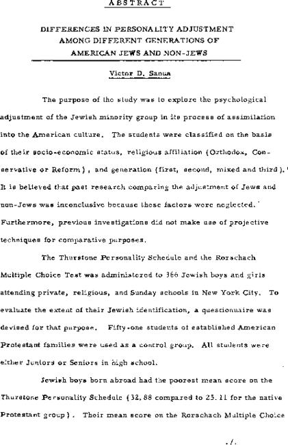 Differences in personality adjustment among different generations of American Jews and non-Jews