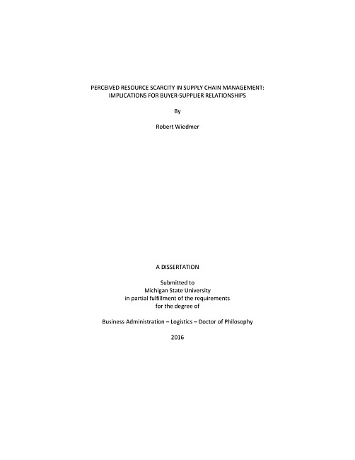 Perceived resource scarcity in supply chain management : implications for buyer-supplier relationships