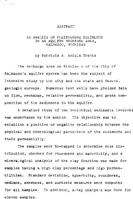An analysis of Pleistocene sediments in an aquifer recharge area, Kalamazoo, Michigan