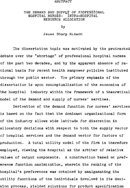 The demand and supply of professional hospital nurses : intra-hospital resource allocation