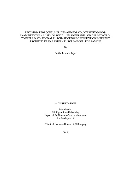 Investigating consumer demand for counterfeit goods : examining the ability of social learning and low self-control to explain volitional purchase of non-deceptive counterfeit products in an eastern European college sample