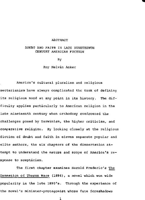 Doubt and faith in late nineteenth century American fiction