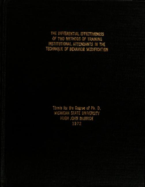 The differential effectiveness of two methods of training institutional attendants in the technique of behavior modification