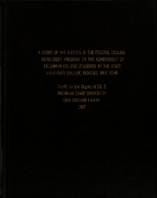 A study of the effects of the federal college work-study program on the achievement of freshmen college students of the State University College, Geneseo, New York