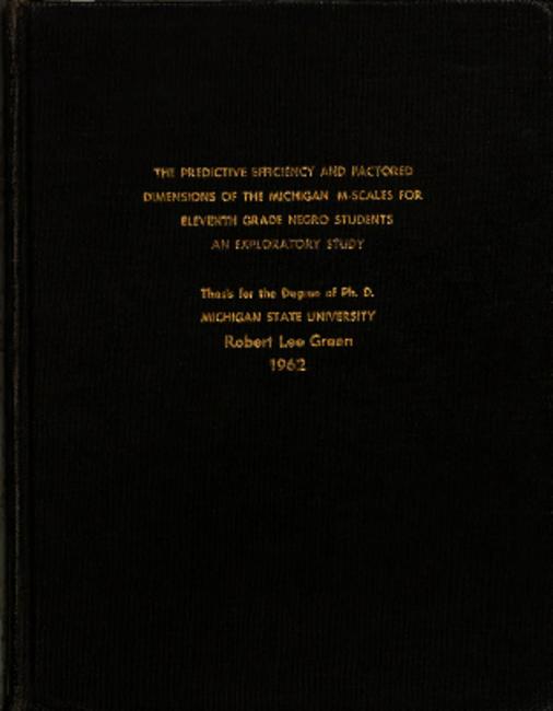 The predictive efficiency and factored dimensions of the Michigan M-scales for eleventh grade Negro students : an exploratory study