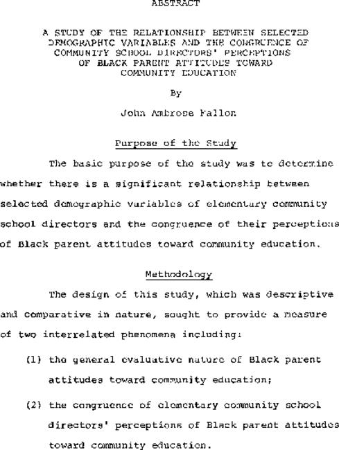 A study of the relationship between selected demographic variables and the congruence of community school directors' perceptions of Black parent attitudes toward community education